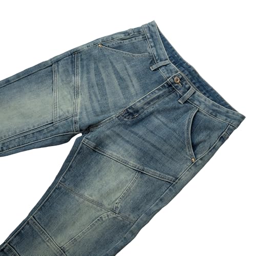 • Design: This pair of jeans features a stylish and avant-garde design with multiple body panels, high-end brand zippers, front and back multiple panels, 6 pocket designs, an additional pocket at the thigh, and hip pocket stitching. The retro hip-hop motorcycle style is more distinctive, and the slim fit design of the small feet paired with leather boots is more stylish