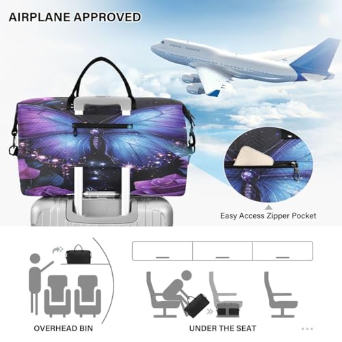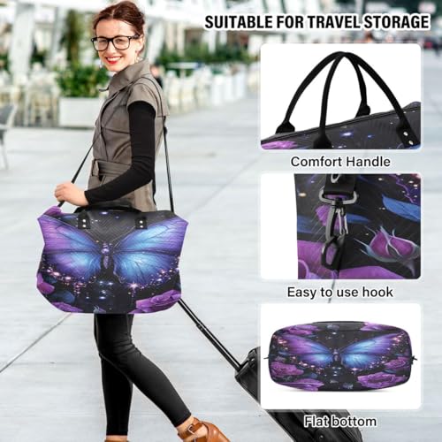 Butterfly Rose Flower Floral Travel Duffle Bag Gym Bag Weekender Bags with Toiletry Bag Travel Trip Tote Bag 7