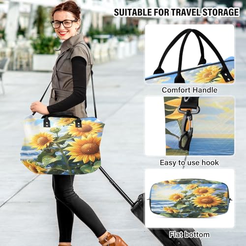 Weekender Bags Travel Duffel Gym Bag Sunflowers Seaside Carry on Overnight Tote Bag with Toiletry Bag for Airplane Travel Trip Gym Yoga 1