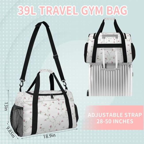 Flowers Purple White Vines Travel Duffel Bag Weekender Overnight Bags for Women Men Foldable Waterproof Tote Bag with Trolley Sleeve 7
