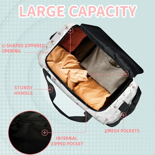 More information about Flowers Purple White Vines Travel Duffel Bag Weekender Overnight Bags for Women Men Foldable Waterproof Tote Bag with Trolley Sleeve