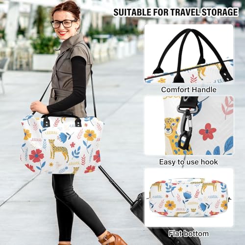 Leopard Flowers Birds Travel Duffel Bag for Men Women with Makeup Bag Weekend Overnight Carry On Bags for Travel Weekend Getaway 6