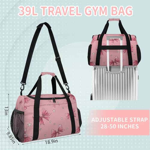 More information about Bow Star Pink Travel Duffel Bag Weekender Overnight Bags for Women Men Foldable Waterproof Tote Bag with Trolley Sleeve