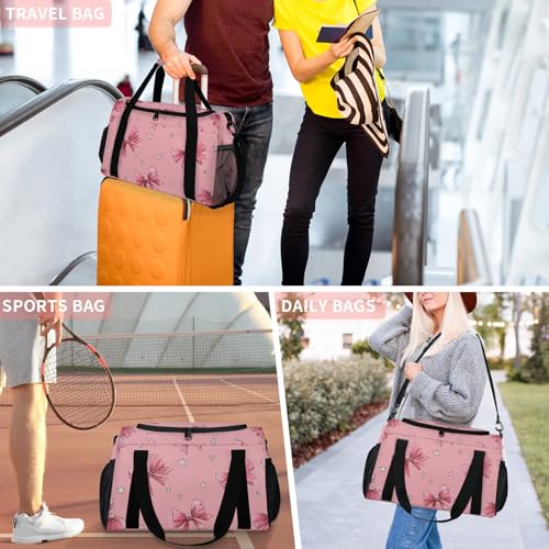 Bow Star Pink Travel Duffel Bag Weekender Overnight Bags for Women Men Foldable Waterproof Tote Bag with Trolley Sleeve 4