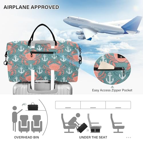 Anchor Crab Blue Large Travel Duffle Bag Weekender Overnight Bags Gym Yoga Bag for Women Men with Toiletry Bag 7