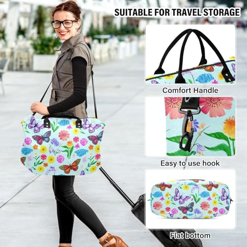 Colorful Butterfly Flowers Blossom Travel Duffel Bag for Men Women with Makeup Bag Weekend Overnight Carry On Bags for Traveling Gym Workout 7