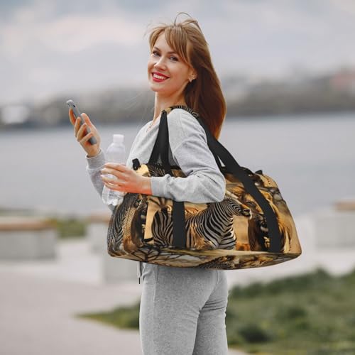 • ThisZebra Animal Print travel duffle bag measures 50x33x26 cm (19.7x13x10.2 inches), offering ample space to accommodate clothes, electronics, and daily essentials. for weekend getaways, gym workouts, or even as an airplane carry on.