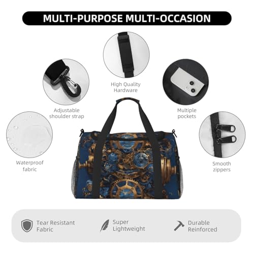 • ThisGears Clock Bronze Century Print travel duffle bag measures 50x33x26 cm (19.7x13x10.2 inches), offering ample space to accommodate clothes, electronics, and daily essentials. for weekend getaways, gym workouts, or even as an airplane carry on.