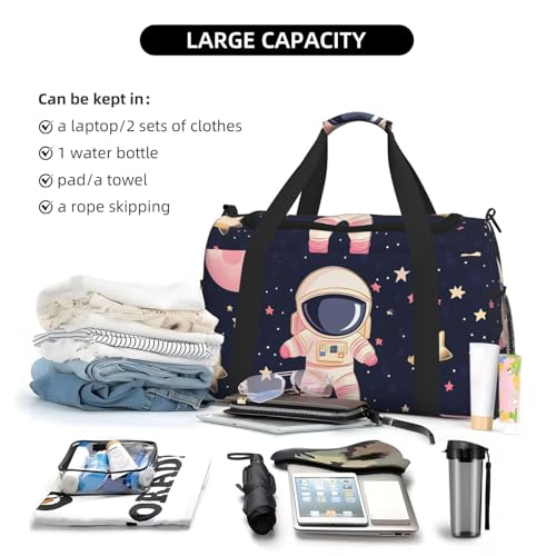 HOT ! Cartoon Astronaut Duffle Bag for Travel Space Planet Sports Gym Tote Carry On Bag Large Shoulder Weekend Overnight for Workout
