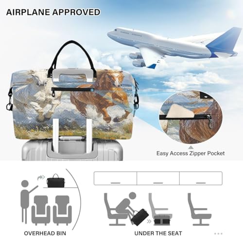 Running Horse Animal Cloud Travel Duffle Bag Gym Bag Weekender Bags with Toiletry Bag Travel Trip Tote Bag 4