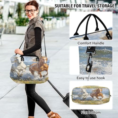 HOT ! Running Horse Animal Cloud Travel Duffle Bag Gym Bag Weekender Bags with Toiletry Bag Travel Trip Tote Bag