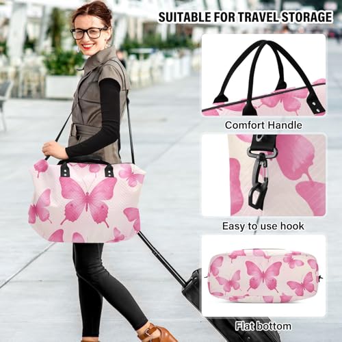 Butterflies Pink Travel Duffel Bag, Shoulder Weekender Overnight Bags - Large Gym Bag with Wet Pocket 5