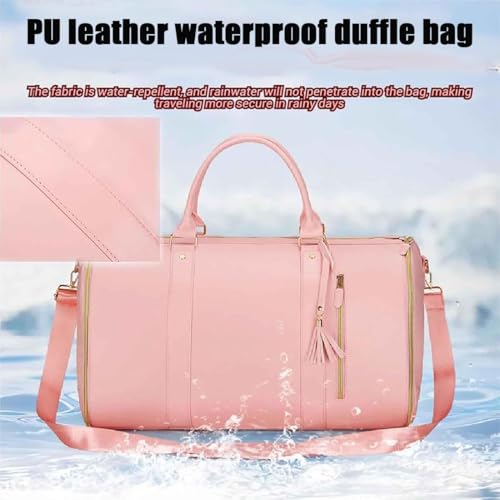 HOT ! Foldable Travel Bag 2.0, Trendfetchus Foldable Travel Bag with Wheels, 45L Waterproof Large Capacity Pu Leather Travel Bags (Pink)