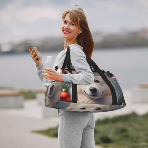 HOT ! Merry Christmas Dog Print Travel Duffle Bag - Foldable Personal Item Travel Bag for Women & Men,Carry-On Convertible Crossbody Tote Bags with Adjustable Shoulder Strap & Pockets 13x10.2x19.7 in