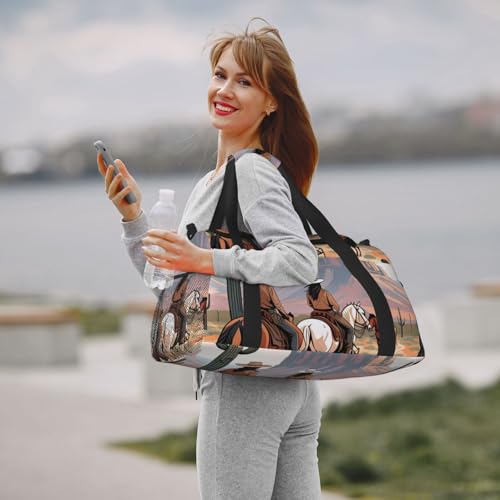 HOT ! West Desert Cactus with Cowboys Riding Horses Print Travel Duffle Bag - Foldable Personal Item Travel Bag for Women & Men,13x10.2x19.7