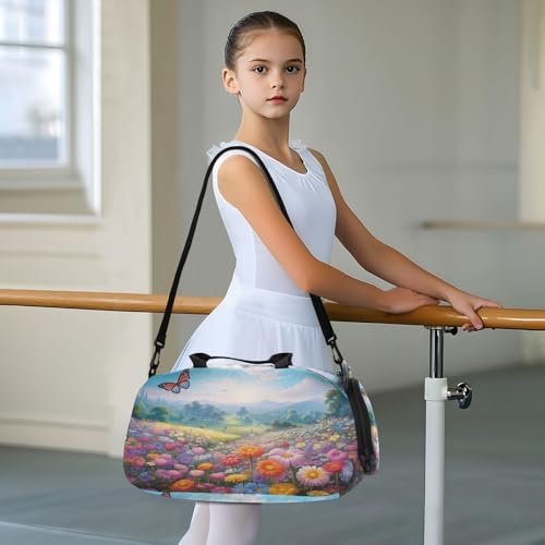 YETTASBIN Sport Travel Duffel Bag for Girls Boys, Butterfly Flower Large Waterproof Weekender Overnight Bag, Detachable Shoulder Strap Gym Bag with Shoe Compartment & Wet Pocket 4