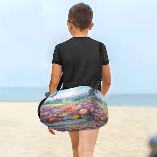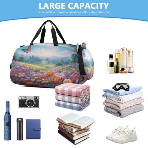 YETTASBIN Sport Travel Duffel Bag for Girls Boys, Butterfly Flower Large Waterproof Weekender Overnight Bag, Detachable Shoulder Strap Gym Bag with Shoe Compartment & Wet Pocket 5