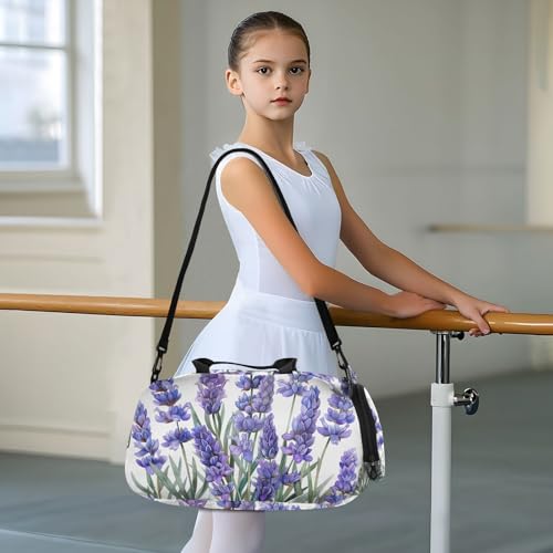 YETTASBIN Sport Travel Duffel Bag for Girls Boys, Lavender Large Waterproof Weekender Overnight Bag, Detachable Shoulder Strap Gym Bag with Shoe Compartment & Wet Pocket 7