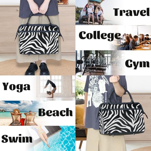 Black White Zebra Stripes Weekender Overnight Bag for Women Waterproof Carry On Travel Duffle Bags with Pocket Lightweight Sports Gym Tote Bag Large Luggage Workout Personal Item Hospital Bags 6