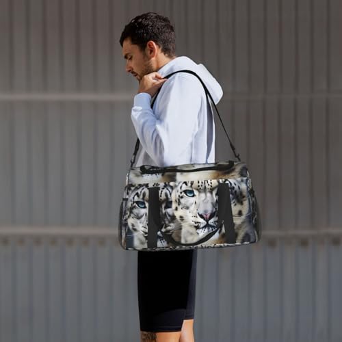 Travel Duffel Bag Lightweight Waterproof Carry On Tote Bag Foldable Weekender Overnight Bags Blue Eyed Snow Leopard Sport Gym Bag For Women Men 3