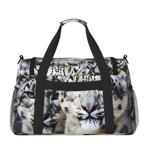 Travel Duffel Bag Lightweight Waterproof Carry On Tote Bag Foldable Weekender Overnight Bags Blue Eyed Snow Leopard Sport Gym Bag For Women Men 7