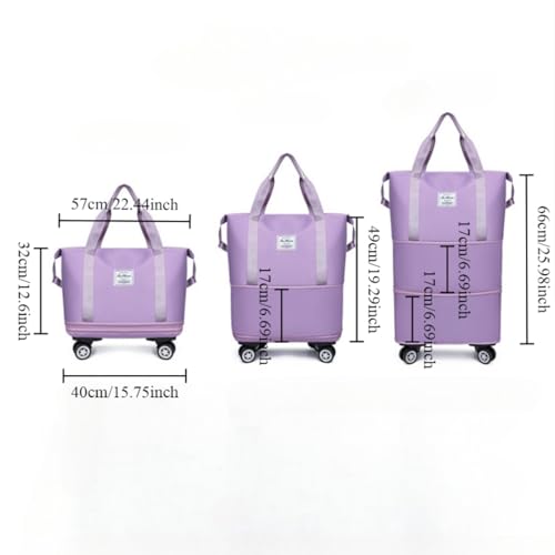 Travel Bag with Wheels, 2025 New Large Capacity Travel Bag - Universal Wheel Removable (Pink) 7