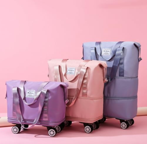 Travel Bag with Wheels, 2025 New Large Capacity Travel Bag - Universal Wheel Removable (Pink) 3