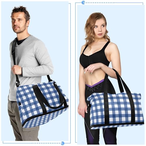 Blue & White Gingham Gym Bag for Women Sport Travel Duffel Bag Shoulder Weekender Overnight Bags with Wet Pocket & Shoe Compartment 7