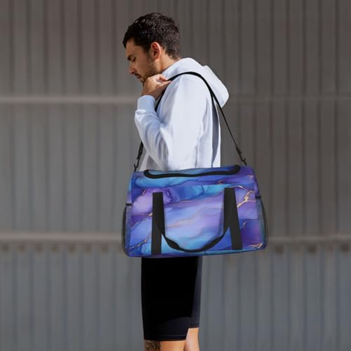 HOT ! Purple Blue Marble Texture Travel Duffel Bag with Strap Multi Pockets Sports Bag Handbag Large Shoulder Bag for Gym Weekend Fitness Camping