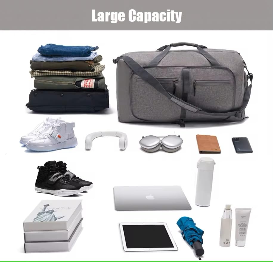 More information about travel Duffle Bag, 65L Foldable Travel Duffel Bag with Shoes Compartment Overnight Bag (GRAY COLOR)