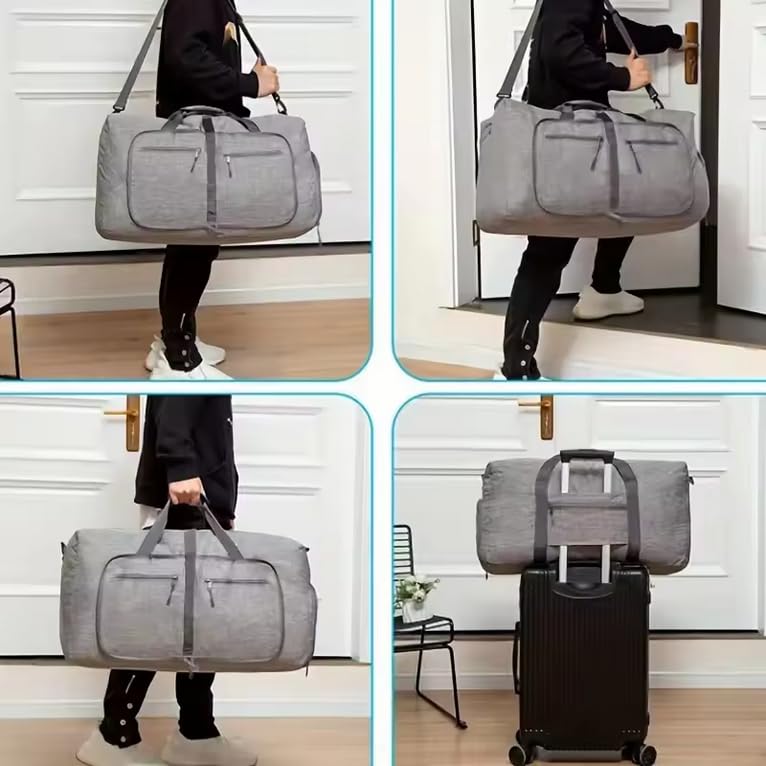 travel Duffle Bag, 65L Foldable Travel Duffel Bag with Shoes Compartment Overnight Bag (GRAY COLOR) 7
