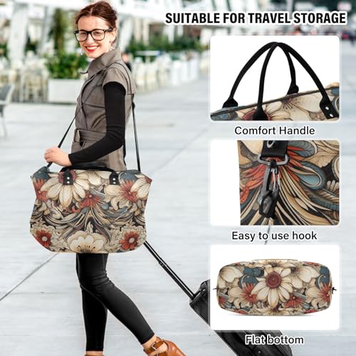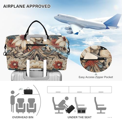 HOT ! Weekender Bags Travel Duffel Gym Bag 3045 Retro Flowers Carry on Overnight Tote Bag with Toiletry Bag for Airplane Travel Trip Gym Yoga