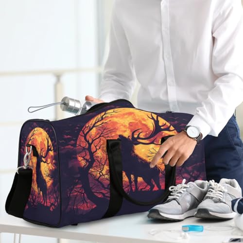HOT ! Travel Duffle Bag Vintage Silhouette Deer Foldable Travel Bags for Men Women, 17 Inch Gym Bag Workout Bag Carry on Weekender Overnight Bag for Gym Travel
