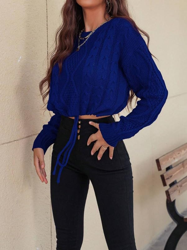 Women's Cropped Sweater for Women Fall,Long Sleeve Crop Top Women Cable Knit Sweater 6