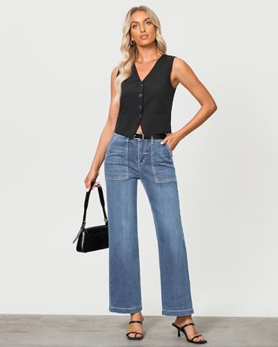 More information about GRAPENT Jeans for Women High Waisted Straight Leg Jeans Stretchy Trendy Wide Leg Denim Pants Jean Trousers Patch Pockets