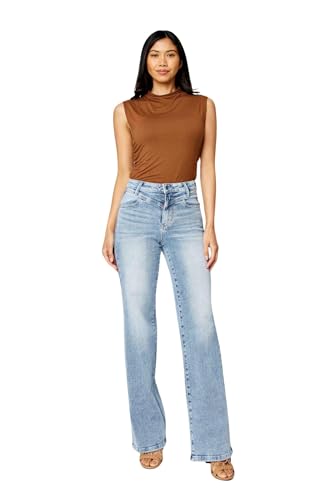HOT ! Judy Blue Women's High Waist Front Yoke Retro Wide Leg Jeans
