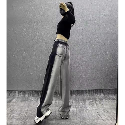 NCDUANSAN Gothic women's retro jeans, contrasting high waisted wide leg pants, street trend loose HIPHOP street dance washed 7