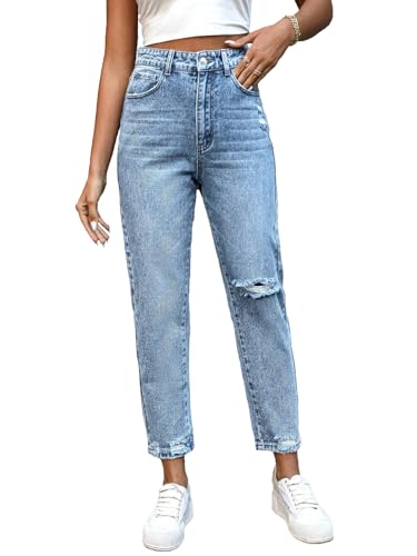 • ❤Feature: The women's high-waisted jeans feature a button with a zipper closure and a distressed ripped Hem design, which shows off your charming body and fashion taste.