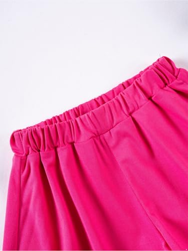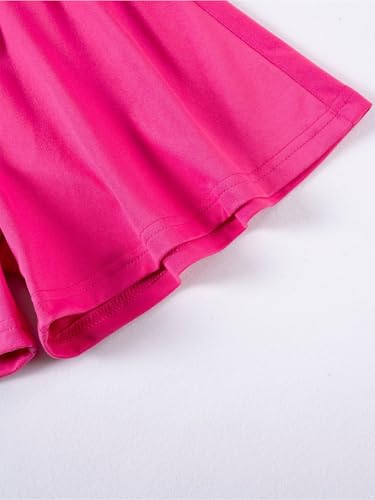Hansber Kids Girls 2-Piece Solid Color Sports Outfit Round Neck T-shirt with Shorts for Exercise Workout Hot Pink 5-6 Years 4