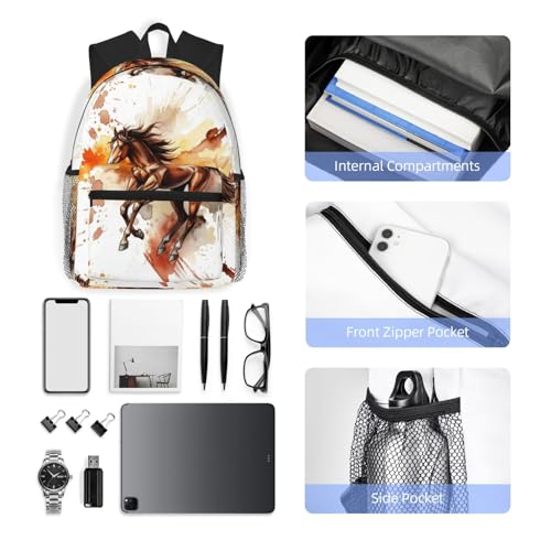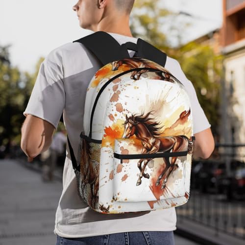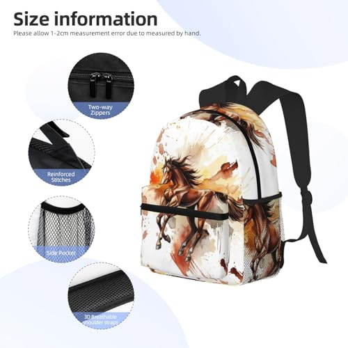 Durable Polyester Rucksack for Traveling & Camping Backpack Men Women, Wild Black Animal Watercolor Horse Painting Bags, Large Capacity Multipurpose Anti-Theft Bookbag Waterproof 5