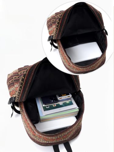 Fashionable Bohemian Canvas Backpack - Large Capacity Tribal Print Women's Travel and Hiking Bag, Cute and Retro (Khaki) 7