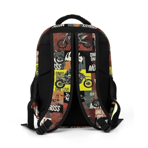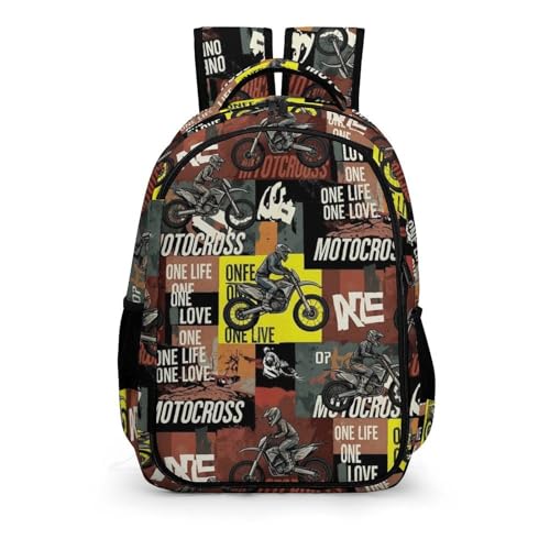 Casual Backpack for Unisex Adult, Novelty Motorcycle Dirt Bike Large Capacity Backpack for Daily Use, Portable Shoulder Bag for Women Men 1