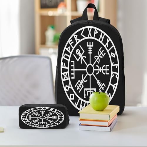HOT ! Vegvisir Nordic Viking Rune Compass Norse Germanic Mythology Symbol 17 Inch Backpack Sets Lunch Bag Lightweight Daypack for Men Women 3Pcs