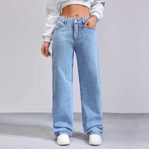 More information about Mid Rise Jeans for Women Straight Leg Mom Jeans Loose Long Elastic Waist Trouser Jean High Waisted Denim Pants