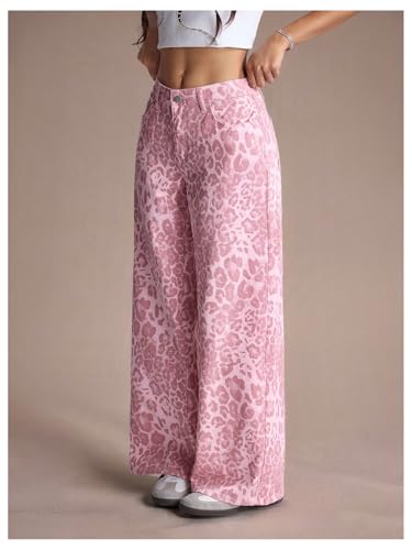Floerns Women's Going Out Leopard Print Baggy Jeans Low Rise Wide Leg Casual Denim Pants 4