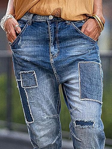 HOT ! Flamingals Barrel Legs Straight Leg Mid Rise Casual Wash Ripped Patched Denim Jeans