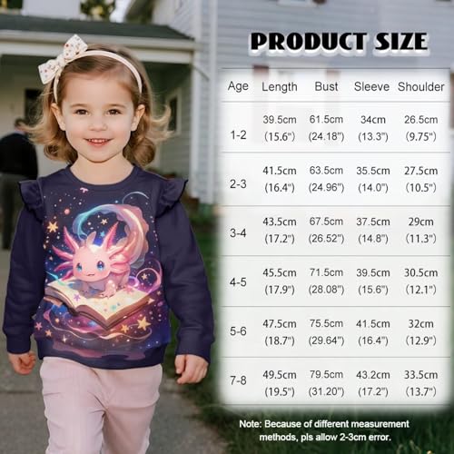 More information about Axolotl Sweatshirt Toddler Clothes Cute Long Sleeve Shirt for Girls Fall Sweatshirts Pullover Tee Tops 1Y-8Y