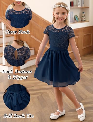YOVION Flower Girls Dress Crew Neck Elegant Lace A-Line Formal Wedding Party Dresses for 6-12 Years 5