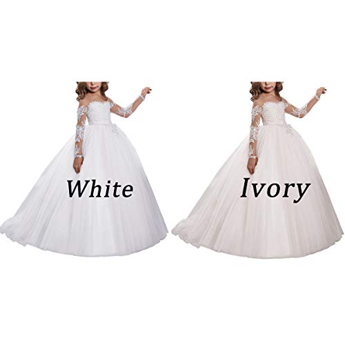 Abaowedding Lace Embroidery Sheer Long Sleeves Kids Trailing Gowns 6