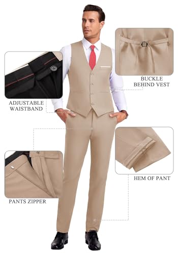Men Suit 3 Pieces Slim Fit, 2 Buttons Groomsmen Business Jacket Vest Pant Prom Tuxedo with Tie 3